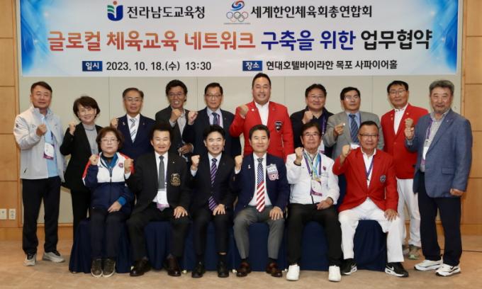 ±è´ëÁß ±³À°°¨Àº ¡°Àü³²ÀÇ ¾ÆÀ̵éÀ» ¼¼°èÀûÀÎ °æÀï·ÂÀ» °®Ãá ÀÎÀç·Î ¾ç¼ºÇϱâ À§ÇÑ À̹ø Çù¾à¿¡ ±â²¨ÀÌ ¼ÕÀ» ¸ÂÀâ¾Æ ÁØ ¼¼°èÇÑÀÎüÀ°È¸ÃÑ¿¬ÇÕȸ¿¡ °¨»ç¸¦ ÀüÇÑ´Ù¸ç, ¿À´ÃÀÇ ¾÷¹«Çù¾àÀÌ ±Û·ÎÄà üÀ°±³À° ¸ðµ¨ÀÇ ±â¹ÝÀÌ µÅ Àü³² üÀ°±³À° ¹ßÀü¿¡ ±â¿©Çϱ⸦ ¹Ù¶õ´Ù.¡±°í ¸»Çß´Ù.