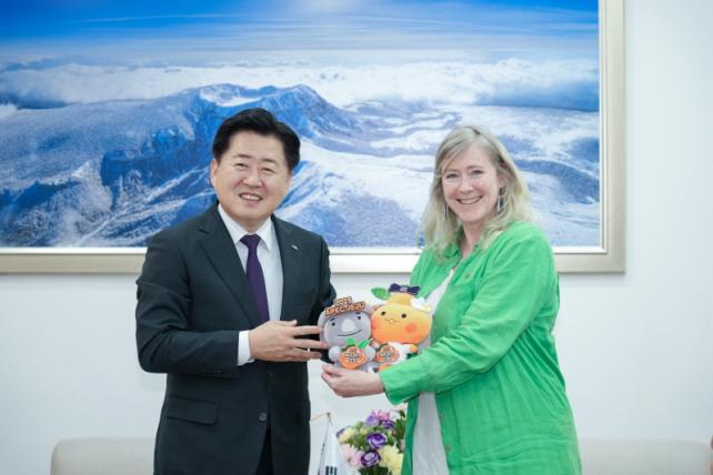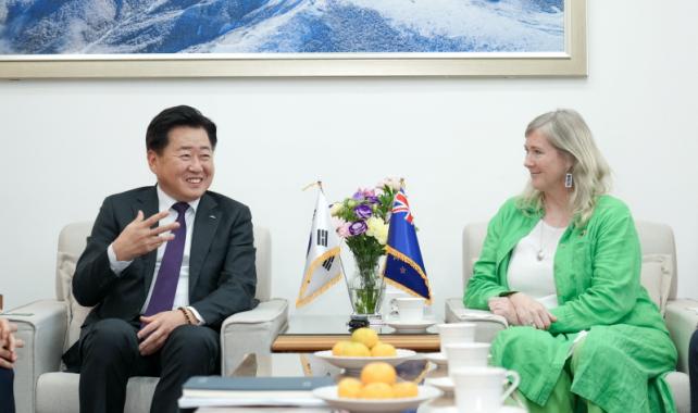 ¿À¿µÈÆ Áö»ç´Â 20ÀÏ ¿ÀÈÄ Á¦ÁÖµµÃ» Áý¹«½Ç¿¡¼ ´ø ¿¤¸®ÀÚº£½º º£³Ý(Dawn Elizabeth Bennet) ÁÖÇÑ ´ºÁú·£µå ´ë»ç¿Í ¸¸³ª ¾ç Áö¿ªÀÇ ±³·ù Çù·Â °È¹æ¾È¿¡ ´ëÇØ ³íÀÇÇß´Ù. ƯÈ÷, À̳¯ ¸é´ã¿¡´Â ´ºÁú·£µåÀÇ Å°À§ Çùµ¿Á¶ÇÕÀÌÀÚ ¼¼°è ÃÖ´ë ÇÁ¸®¹Ì¾ö ŰÀ§ ºê·£µåÀÎ Á¦½ºÇÁ¸® ÄÚ¸®¾Æ Çѱ¹¡¤Á¦ÁÖµµ ´ëÇ¥ ¹× ´ºÁú·£µå ¹«¿ªÁøÈïû °ü°èÀÚ µîÀÌ ÇÔ²²Çß´Ù.
