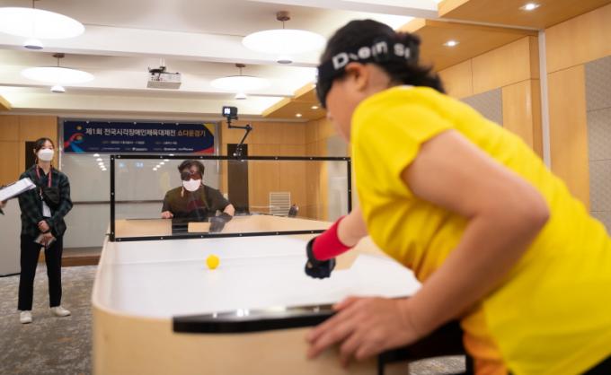 ¼î´Ù¿î Âü°¡¼±¼ö Àå¾Ö À¯Çü ½Ã°¢Àå¾Ö´Ù. °æ±â´Â ±¤¾ç ¼ºÈ²½ºÆ÷Ã÷¼¾ÅÍ 2Ãþ¿¡¼ ÁøÇàµÈ´Ù. ½¶·±°ú ¼î´Ù¿îÀº Àå¾ÖÀÎ ½ºÆ÷Ã÷°è¿¡¼ µ¶Æ¯ÇÏ°í ¿Á¤Àû °æ±â¸¦ ¼±º¸À̰í, Àå¾Ö¸¦ °¡Áø »ç¶÷¿¡°Ô ÀÚ½ÅÀÇ ÀáÀç·ÂÀ» ¹ß°ßÇÏ°í ¿Á¤À» ÆîÄ¥ ¼ö ÀÖ´Â ±âȸ¸¦ Á¦°øÇÑ´Ù. ÀÌ·¯ÇÑ ½ºÆ÷Ã÷ Á¾¸ñÀº »çȸ¿¡¼ Àå¾ÖÀÎ ½ºÆ÷Ã÷ÀÇ Á߿伺À» °Á¶Çϸç, ´Ù¾ç¼º°ú Æ÷¿ë¼ºÀ» ÁõÁø½ÃŰ´Â ¿ªÇÒÀ» Çϰí ÀÖ´Ù.