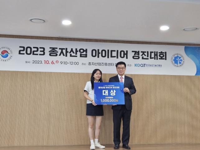Áö³ 10¿ù ¡®2023 ±¹Á¦Á¾ÀÚ¹Ú¶÷ȸ¡¯ ºÎ´ëÇà»ç·Î ÁøÇàµÈ 2023 Á¾ÀÚ»ê¾÷ ¾ÆÀ̵ð¾î °æÁø´ëȸ´Â ½Ã¹Î¾ÆÀ̵ð¾î ºÎºÐ¿¡¼ ÀϹÝÀΰú °æÀïÇØ Á¾ÀÚ»ê¾÷°ú 2Çгâ ÀÌÁö¿ì ÇлýÀº ´ë»ó(»ó±Ý 100¸¸¿ø)À», 1Çг⠱èÇÏ°æ ¿Ü 2ÀÎ(ÆÀ¸í:FGCJ)Àº ¿ì¼ö»ó(»ó±Ý 50¸¸¿ø)À» ¼ö»óÇÏ´Â Äè°Å¸¦ ÀÌ·ð´Ù.