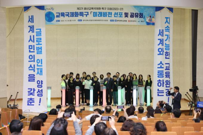 ÀÌÁ¤¼± ±³À°°¨Àº ¡°À̹ø ¹Ì·¡ºñÀü ¼±Æ÷ ¹× °øÀ¯È¸¸¦ ½ÃÀÛÀ¸·Î °ü·Ã »ç¾÷ÀÌ ¼º°øÀûÀ¸·Î ÃßÁøµÆÀ¸¸é ÇÑ´Ù¡±¸ç ¡°±¤ÁÖ ÇлýµéÀÌ ¹ÎÁÖ, ÀαÇ, ÆòÈ, ¹®È ´Ù¾ç¼º µî Àηù º¸ÆíÀû °¡Ä¡¸¦ ÀÌÇØÇϰí, À̸¦ ±¹Á¦¹«´ë¿¡¼ ½ÇõÇÒ ¼ö ÀÖ´Â ±Û·Î¹ú ÀÎÀç·Î ¼ºÀåÇÒ ¼ö ÀÖµµ·Ï ÃÖ¼±À» ´ÙÇϰڴ١±°í ¸»Çß´Ù.