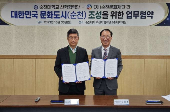 ¼øÃµ½ÃÀÇ ´ëÇѹα¹ ¹®Èµµ½Ã ÁöÁ¤À» À§ÇØ ¼øÃµ´ëµµ ÈûÀ» º¸ÅÄ´Ù. ¾Ö´Ï¸ÞÀ̼ǡ¤¹®ÈÄÜÅÙÃ÷¸¦ ±Û·ÎÄôëÇÐ 3´ë Æ¯È ºÐ¾ß·Î ³»¼¼¿î ¼øÃµ´ëÇб³´Â ÀÎÀû¡¤¹°Àû ÀÎÇÁ¶ó °øµ¿ Ȱ¿ë¿¡ ±â¹ÝÇÏ¿© ¼øÃµ ¹®È»ê¾÷ ÄÜÅÙÃ÷ ºÐ¾ß °øµ¿»ç¾÷ ÃßÁø ¹× ¿ì¼ö ÀÎÀç À°¼ºÀ» À§ÇØ (Àç)¼øÃµ¹®ÈÀç´Ü°ú »óÈ£ ¹ßÀüÀ» À§ÇÑ Çù¾àÀ» ü°áÇÏ¿´´Ù.