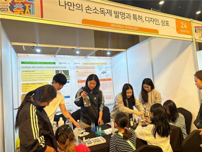 ƯÇãû, Çѱ¹¹ß¸íÁøÈïȸÀÇ ¡®½Å»ê¾÷ºÐ¾ß Áö½ÄÀç»ê À¶ÇÕÀÎÀç ¾ç¼º»ç¾÷¡¯ÀÇ ÀÏȯÀ¸·Î ÀÌ·ïÁø À̹ø üÇè ºÎ½º´Â ±èÀÎÁß ±³¼ö¿Í ÇöÁ¤¼® ±³¼ö µîÀÌ Á÷Á¢ ÁöµµÇÏ¿© Áö½ÄÀç»ê »çÀü ±³À°À» ¹ÞÀº Çкλý°ú ´ëÇпø»ýÀÌ Âü¿©Çß´Ù. 2Àϰ£ 14½Ã°£¿¡ °ÉÃÄ ÃÊ¡¤Áß¡¤°íµîÇлý µî 200¿© ¸íÀÌ ³Ñ´Â Çлýµé¿¡°Ô ¹ÙÀÌ·¯½º¿Í »ì±Õ, ¼Òµ¶ÀÇ °³³ä°ú ¿ø¸®¸¦ ¼³¸íÇϰí, Á÷Á¢ ´Ù¾çÇÑ ¹°ÁúÀ» ¹èÇÕÇÑ ¼Õ¼Òµ¶Á¦¸¦ Á¦ÀÛÇÏ¿© ÀÌ Æ¯Çã, µðÀÚÀÎ, »óÇ¥ µîÀÇ »ê¾÷Àç»ê±ÇÀ» ¹è¿ì´Â üÇè ±³½ÇÀ» ¿î¿µÇÏ¿´´Ù. 100¿© ¸íÀÌ ³Ñ´Â Çлýµé¿¡°Ô ¡®»õ½ÏÀÎ»ï °£Æí »ýÀ° ÀåÄ¡ ¹ß¸í¡¯À» ÅëÇØ Áö½ÄÀç»ê±ÇÀÇ Á¾·ù¸¦ ¼Ò°³ÇÏ°í ³ª¸¸ÀÇ ¹ß¸í°ú »óÇ¥¸¦ Á¦ÀÛÇϴ üÇè ºÎ½º¸¦ ¿î¿µÇÏ¿´°í, TRIZ 40 ¹ß¸í¿ø¸®·Î ¼ÕÀ¸·Î ¸¸Áö°í ´«À¸·Î º¼ ¼ö ÀÖ´Â ¹ß¸í ¿ëǰÀ» ¼Ò°³ÇÏ´Â ÀÚ¸®¸¦ ¸¶·ÃÇÏ¿´´Ù.