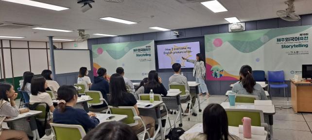 ÀÌÀ¯¼± Á¦ÁÖ±¹Á¦±³À°¿øÀåÀº¡°À̹ø Á¦Áֿܱ¹¾îÃàÀü¿¡ ¿¹»óº¸´Ù ´õ ¸¹Àº ÇлýµéÀÌ °ü½ÉÀ» °¡Áö°í ÁøÁöÇÏ°Ô Âü°¡ÇÏ¿© ¼º°øÀûÀÎ Çà»ç°¡ µÈ °ÍÀ» ¸Å¿ì ÀÇ¹Ì ÀÖ°í ±â»Ú°Ô »ý°¢Çϸç, ¾ÕÀ¸·Îµµ ¿Ü±¹¾î ÇнÀÀ» À§ÇÑ ¼ÒÅë°ú ³ª´®ÀÇ ÀåÀ¸·Î¼ ¿Ü±¹¾î ÃàÀüÀ» ÅëÇØ ¿Ü±¹¾î¿¡ ´ëÇÑ Èï¹Ì¿Í ÀڽۨÀ» È®»êÇÒ ¼ö ÀÖ´Â ±âȸ¸¦ Áö¼ÓÀûÀ¸·Î ¸¶·ÃÇϰڴ١±°í ¸»Çß´Ù.