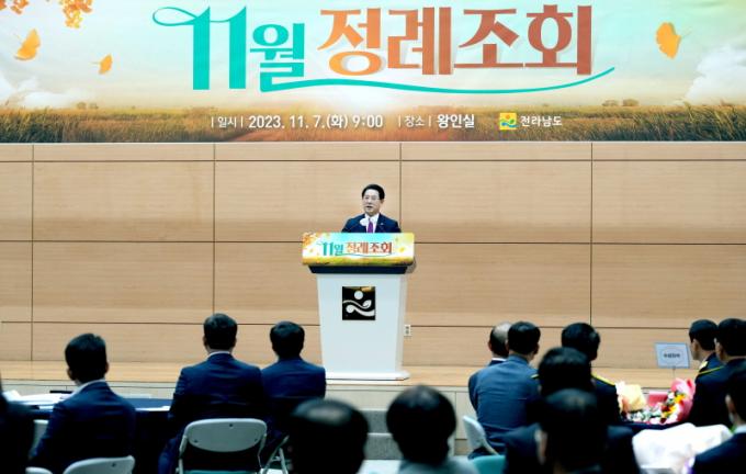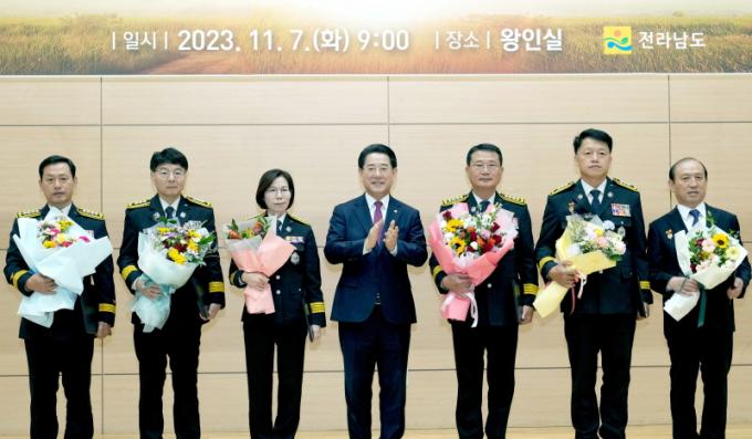 | ±è¿µ·Ï Àü¶ó³²µµÁö»ç°¡ 7ÀÏ ¿ÀÀü µµÃ» ¿ÕÀνǿ¡¼ ¿¸° °ø°¨°ú ¼ÒÅëÀ» À§ÇÑ 11¿ù Á¤·ÊÁ¶È¸¿¡¼ ¡®Á¦61Áֳ⠼ҹæÀÇ ³¯¡¯ Á¤ºÎÆ÷»óÀ» ¼ö¿©ÇÏ°í ±â³äÃÔ¿µÀ» Çϰí ÀÖ´Ù. |