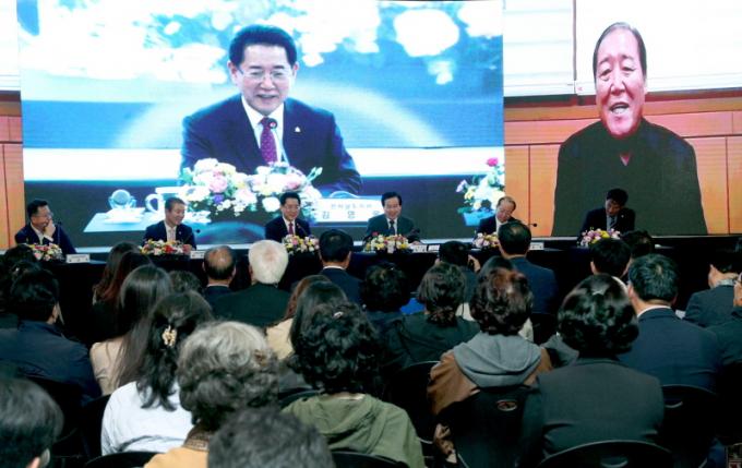 ±è¿µ·Ï Áö»ç°¡ À̳¯ ¸ñÆ÷ ½Å¾ÈºñġȣÅÚ¿¡¼ ÁÖÀçÇÑ ¸ñÆ÷ ¡®µµ¹Î°úÀÇ ´ëÈ¡¯¿¡´Â ¹ÚÈ«·ü ¸ñÆ÷½ÃÀå, ¸ñÆ÷½ÃÀÇȸ ¹®Â÷º¹ ÀÇÀå, ±è±Í¼± ºÎÀÇÀå, Àü³²µµÀÇȸ Àü°æ¼± ºÎÀÇÀå, ÃÖ¼±±¹¡¤Á¶¿ÁÇö¡¤¹Ú¹®¿Á µµÀÇ¿ø, ¹ÚÀǽ ¸ñÆ÷¼Ò¹æ¼Àå, Á¤´ë¼º ±³À°Áö¿øÃ»±³À°Àå, ÀÌÇâ¼÷ Àü³²¼ºÎº¸ÈÆÁöûÀå, Á¶¼ºÀç ¸ñÆ÷ ³ëÀÎȸÀå µî 200¿© ¸íÀÌ ¿Â¡¤¿ÀÇÁ¶óÀÎÀ» ÅëÇØ Âü¿©Çß´Ù.