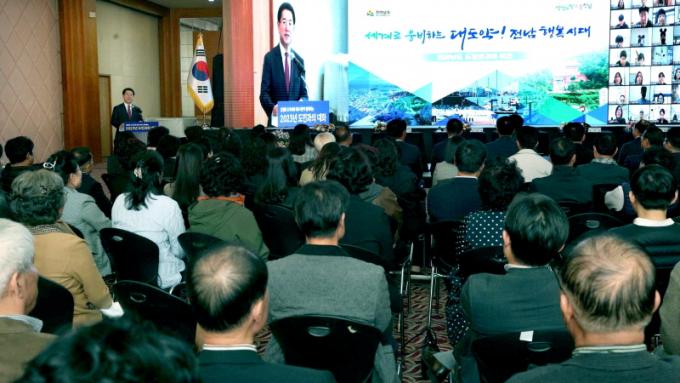 | ±è¿µ·Ï Àü¶ó³²µµÁö»ç°¡ 7ÀÏ ¿ÀÈÄ ¸ñÆ÷½Ã Á×±³µ¿ ½Å¾ÈºñġȣÅÚ¿¡¼ ¿¸° 2023 ¸ñÆ÷½Ã µµ¹Î°úÀÇ ´ëÈ¿¡¼ ½Ã¹Îµé°ú Áï¹®Áï´äÀ» Çϰí ÀÖ´Ù. |