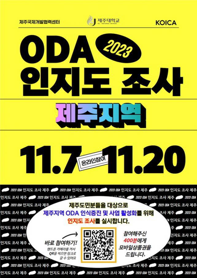 ¼³¹®Âü¿©ÀÚ Áß 400¸í¿¡°Ô´Â ¸ð¹ÙÀÏ »óǰ±ÇÀÌ Á¦°øµÉ ¿¹Á¤ÀÌ´Ù. ¼³¹®Á¶»ç´Â https://forms.gle/vykFznJEd5nTZb9r7 ¸µÅ© ¶Ç´Â Æ÷½ºÅÍÀÇ QRÄڵ带 ÅëÇØ Âü¿©ÇÒ ¼ö ÀÖ´Ù. ÀÚ¼¼ÇÑ »çÇ×Àº ȨÆäÀÌÁö(https://jjidcc.modoo.at/)¸¦ ÂüÁ¶ÇÏ¸é µÈ´Ù. Á¦ÁÖ±¹Á¦°³¹ßÇù·Â¼¾ÅÍ´Â À̹ø ¼³¹®Á¶»ç¸¦ ÅëÇØ Á¦ÁÖÁö¿ª ODA ÀÌÇØÁõÁø¹æ¾È ¹× »ç¾÷Àü·« ¼ö¸³¿¡ ¹Ý¿µÇÒ °èȹÀÌ´Ù.