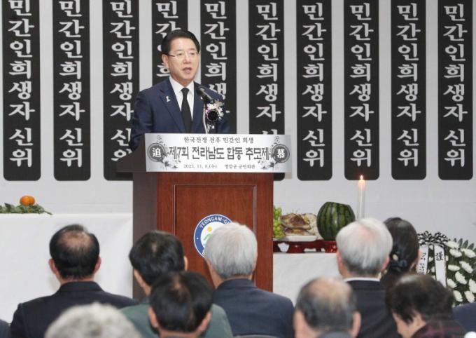 (»ç)Çѱ¹ÀüÀï ÀüÈÄ ¹Î°£ÀÎ Èñ»ýÀÚ Àü³²¿¬ÇÕÀ¯Á·È¸¿Í Àü³²µµ°¡ °³ÃÖÇØ ¾ö¼÷ÇÏ°Ô ÁøÇàµÈ À̳¯ Ã߸ð½Ä¿¡´Â ±è¿µ·Ï Àü³²µµÁö»ç¿Í ÀÌ¿Á³² Áø½Ç¡¤ÈÇØ¸¦À§ÇѰú°Å»çÁ¤¸®À§¿øÈ¸ »óÀÓÀ§¿ø, ¿ì½ÂÈñ ¿µ¾Ï±º¼ö, À¯Á·, µµ¹Î µî 500¿© ¸íÀÌ ÀÚ¸®¸¦ ÇÔ²²Çß´Ù.