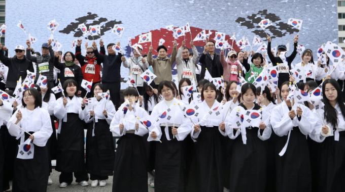 À̳¯ ´ëȸ´Â ´ëÇѵ¶¸³À» À§ÇØ ºÒÀÇ¿¡ ¸Â¼¹´ø 94³â Àü ÇлýµéÀ» ±â¸°´Ù´Â Àǹ̸¦ ´ã¾Æ¡®¼¼»óÀ» ¹Ù²Û ÀÛÀº °ÅÀε顯À̶õ ÁÖÁ¦·Î ÁøÇàµÆ´Ù. Çà»ç ù ¹®Àº ¸ñÆ÷ Á¤¸í¿©ÀÚ°íµîÇб³ ÇлýµéÀÌ ¡®µ¶µµ´Â ¿ì¸® ¶¥¡¯ ³ë·¡¿¡ ¸ÂÃá Ç÷¡½Ã¸÷À¸·Î ¿¾î Âü°¡ÀÚµéÀÇ ¹Ú¼ö¸¦ ¹Þ¾Ò´Ù. À̾î Âü°¡ÀÚµéÀÌ ´ëÇü űر⸦ ÆîÄ¡´Â ÆÛÆ÷¸Õ½º ÈÄ, º»°ÝÀûÀÎ ´ÜÃึ¶óÅæÀÌ ½ÃÀ۵ƴÙ.