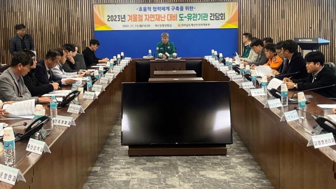 °£´ãȸ¿£ Àü³²µµ 13°³ Çù¾÷ºÎ¼¿Í Àü³²Áö¹æ°æÂûû, Çѱ¹µµ·Î°ø»ç, Çѱ¹Àü·Â°ø»ç µî 10°³ À¯°ü±â°ü °ü°èÀÚ°¡ Âü¼®Çß´Ù. °Ü¿ïö ÀÚ¿¬Àç³ ´ëÃ¥ ±â°£ µµ¹Î ¾ÈÀüÀ» À§ÇÑ »óȲ°ü¸®Ã¼°è¸¦ À¯ÁöÇϰí, ÀçÇØ ¹ß»ý ½Ã ±â°üº° ¿ªÇÒ°ú »óÈ£ Çù¾÷¹æ¾ÈÀ» ³íÀÇÇß´Ù.