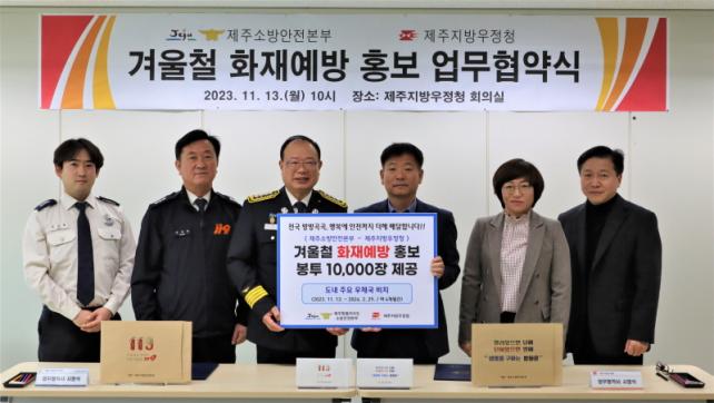 Á¤ºÎÁ¦ÁÖÁö¹æÇÕµ¿Ã»»ç ³» Á¦ÁÖÁö¹æ¿ìÁ¤Ã»¿¡¼ ÁøÇàµÈ À̳¯ ¾÷¹«Çù¾àÀº ÈÀç¹ß»ýÀÌ ÀæÀº °Ü¿ïö¿¡ ´ëºñÇØ µµ¹ÎÀÌ °ø°¨ÇÏ´Â ºÒÁ¶½É ȯ°æÀ» Á¶¼ºÇϱâ À§ÇØ ¸¶·ÃµÆ´Ù. À̹ø Çù¾à¿¡ µû¶ó ³»³â 2¿ù±îÁö ¾à 4°³¿ù°£, À̿밴ÀÌ ¸¹Àº µµ³» ÁÖ¿ä ¿ìü±¹ 5°³¼Ò¿¡ ÈÀ翹¹æ È«º¸ ºÀÅõ ÃÑ 1¸¸ Àå(´ëºÀÅõ 5,000Àå / ¼ÒºÀÅõ 5,000Àå)À» ºñÄ¡ÇØ µµ¹Î¿¡°Ô ¹«»óÀ¸·Î Á¦°øÇÏ´Â µî °Ü¿ïö ÈÀ翹¹æÀ» À§ÇÑ µµ¹Î È«º¸¿¡ ¾ç ±â°üÀÌ »óÈ£ Çù·ÂÀ» µµ¸ðÇÑ´Ù. ±è¼öȯ Á¦ÁÖ¼Ò¹æ¾ÈÀüº»ºÎÀåÀº ¡°¾÷¹«Çù¾àÀ» ÅëÇØ °Ü¿ïö ÈÀ翹¹æ ¸Þ½ÃÁö¸¦ Àü±¹ ¹æ¹æ°î°î Àü´ÞÇÒ ¼ö ÀÖ°Ô µÆ´Ù¡±¸ç, ¡°ÈÀ翹¹æ È«º¸ °øÀͼºÀ» Á¦°íÇϰí È¿°ú¸¦ ±Ø´ëÈÇϴµ¥ Çù·ÂÇØÁֽŠÁ¦ÁÖÁö¹æ¿ìÁ¤Ã»¿¡ °¨»ç µå¸°´Ù¡±°í ¸»Çß´Ù.