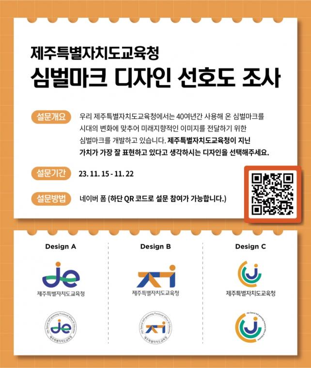 Á¦ÁÖÆ¯º°ÀÚÄ¡µµ±³À°Ã»¿¡ µû¸£¸é Áö³ 6¿ù µðÀÚÀÎ ¿ë¿ª ¾÷ü¿Í °è¾àÀ» ü°áÇϰí, 7¿ù Àü µµ¹ÎÀ» ´ë»óÀ¸·Î ½É¹ú¸¶Å©¿¡ ´ëÇÑ¡®ÀνÄÁ¶»ç¡¯¹× ³»°¡ »ý°¢ÇÏ´Â Á¦ÁÖ±³À°¿¡ ´ëÇÑ¡®Å°¿öµå °ø¸ð¡¯¸¦ °ÅÃÆÀ¸¸ç, ¼öÂ÷·ÊÀÇ È¸ÀǸ¦ °ÅÃÄ ÃÖÁ¾ 3°³ÀÇ Èĺ¸¾ÈÀ» ¼±È£µµ Á¶»ç´ë»óÀ¸·Î ¼±Á¤ÇÏ¿´´Ù. ¼±È£µµ Á¶»ç´Â µµ¹Î ´©±¸³ª Âü¿©ÇÒ ¼ö ÀÖ°í, Âü¿©¹æ¹ýÀº URL ¶Ç´Â QRÄÚµå, ±³À°Ã» ȨÆäÀÌÁö´Â ÅëÇØ Á¢¼ÓÀÌ °¡´ÉÇϸç, °¡Àå ¸¶À½¿¡ µå´Â µðÀÚÀÎÀ» ¼±ÅÃÇÏ¸é µÈ´Ù. ½ÅÁ¦ÁÖ·ÎÅ͸®, Á¦ÁÖ½Ãû ÁÖº¯, ¼±ÍÆ÷ 1È£ ±¤Àå µî¿¡¼´Â ÇöÀåÅõÇ¥µµ ¿î¿µµÈ´Ù. ÇÑÆí, Á¦ÁÖÆ¯º°ÀÚÄ¡µµ±³À°Ã»ÀÌ »ç¿ëÇÏ´Â ½É¹ú¸¶Å©´Â 1984³â¿¡ Á¦ÀÛµÇ¾î »ç¿ëÇØ ¿À´ø °ÍÀ¸·Î, ¹Ì·¡ÁöÇâÀûÀÎ Á¦ÁÖ±³À°ÀÇ Çٽɰ¡Ä¡ µîÀ» ´ã¾Æ³»±â À§ÇÏ¿© 40¿© ³â ¸¸¿¡ ±³Ã¼Çϰí ÀÖ´Ù.