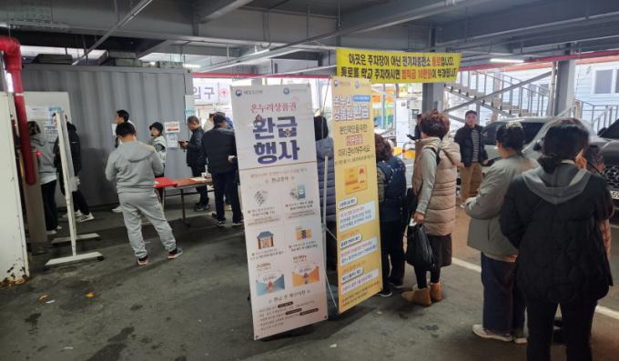 ¾Õ¼ Áö³ 9¿ùºÎÅÍ ¸ñÆ÷ ÀÚÀ¯½ÃÀå°ú µ¿ºÎ½ÃÀå, ±¤¾ç Á߸¶½ÃÀå¿¡¼ ÁøÇà ÁßÀÎ »óǰ±Ç ȯ±ÞÇà»çµµ ¿À´Â 12¿ù 15ÀϱîÁö °è¼ÓµÈ´Ù. ȯ±ÞÀº ´çÀÏ ½ÃÀå¼ ±¸¸ÅÇÑ ¼ö»ê¹° ±¸ÀÔ ¿µ¼öÁõÀ» ½ÃÀå¿¡ À§Ä¡ÇÑ Çà»ç ºÎ½º¿¡ Á¦½ÃÇÏ¸é µÈ´Ù.