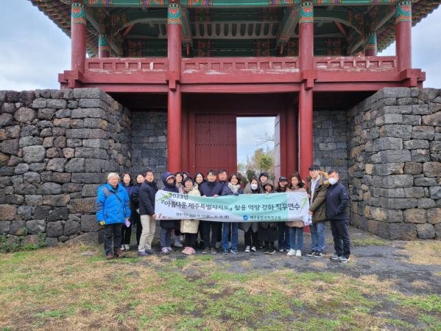 Àü ÇÔ´öÃÊ ±³ÀåÀÌÀÚ Çö Á¦ÁÖÈï»ç´Ü ¹®ÈÀ¯»ê´ä»çȸÀåÀÎ °í¿µÃ¶ °»ç°¡ À̹ø ¿¬¼ö¸¦ ¸Ã¾Æ ÁøÇàÇÏ¿´´Ù. ¿¬¼ö ³»¿ëÀ¸·Î 11¿ù 17ÀÏ(±Ý) ù³¯Àº »ç¶óÁ®°¡´Â Á¦ÁÖ¹®È¿¡ ´ëÇÑ ÀÌ·Ð ¼ö¾÷ÀÌ ÀÌ·ç¾îÁ³À¸¸ç, 11¿ù 18ÀÏ(Åä)¿¡´Â Á¦ÁÖ ¼ºÎÁö¿ªÀÇ ¹®ÈÀç¿Í À¯ÀûÁö(±¤·É¸® °íÀε¹, °í¼º¡¤»ó±Í¸® Ç×ÆÄµÎ¸®Å伺, °í»ê1¸® ½Å¼®±âÀ¯¹°»êÆ÷Áö, ´ëÁ¤À¾ ¾Ë¶ß¸£ºñÇàÀå µî)¸¦ µ¹¸ç ÇöÀå üÇè°ú ½Ç½À Áß½ÉÀÇ ¿¬¼ö·Î ¿î¿µµÇ¾ú´Ù.