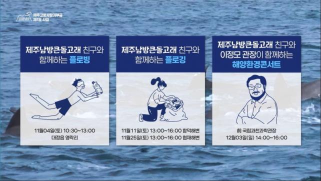 °íÇâ»ç¶û±âºÎ±Ý Á¦1È£ »ç¾÷ÀÎ À̹ø Ç÷αëÀº ³²¹æÅ«µ¹°í·¡ µî Á¦ÁÖ ¿¬¾ÈÀÇ ÇØ¾ç»ý¹°À» º¸È£Çϰí, ûÁ¤ Á¦Áֹٴٸ¦ ÁöŰ´Â ºÐÀ§±â¸¦ È®»ê½Ã۱â À§ÇØ ¸¶·ÃµÆ´Ù. À̹ø Çà»ç´Â ù ¹øÂ° ¹Ì¼ÇÀÎ Ç÷αëÀ» ½ÃÀÛÀ¸·Î ºñÄ¡ÄÚ¹Ö, ÀÚ¿¬Å×¶óÇÇ, ³²¹æÅ«µ¹°í·¡ ¸¸µé±â, ȯ°æ·ê·¿ÄûÁî µî 5°³ ÇØ¾çȯ°æ ¹Ì¼Ç ¼øÀ¸·Î ÁøÇàµÆ´Ù.