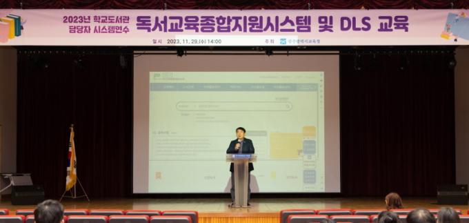 1ÀÏ ½Ã±³À°Ã»¿¡ µû¸£¸é À̹ø ¿¬¼ö´Â Çб³µµ¼°ü ´ã´çÀÚ¿Í µ¶¼±³À°Á¾ÇÕÁö¿ø½Ã½ºÅÛ °ü¸®¡¤¿î¿µÀÚ 300¿© ¸íÀ» ´ë»óÀ¸·Î ÁøÇàµÆ´Ù. ÁÖ ¿¬¼ö´Â µ¶¼±³À°Á¾ÇÕÁö¿ø½Ã½ºÅÛ°ú DLS(Digital Library System, µðÁöÅÐ ÀÚ·á½Ç Áö¿ø¼¾ÅÍ)¿¡ ´ëÇÑ È°¿ë ±³À°À» Áß½ÉÀ¸·Î ÀÌ·ïÁ³´Ù.