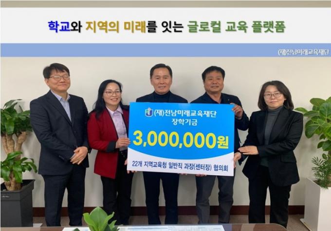 Àü³²¹Ì·¡±³À°Àç´Ü(ÀÌ»çÀå ±è´ëÁß)Àº Áö³ 12¿ù 1ÀÏ Àü³²±³À°Ã» »êÇÏ 22°³ Áö¿ª±³À°Áö¿øÃ» ÀϹÝÁ÷ °úÀå(¼¾ÅÍÀå) ÇùÀÇȸ(ȸÀå ±è°æ°ï)°¡ ²Þ ½ÇÇö±Ý 300¸¸ ¿øÀ» ±âºÎÇß´Ù°í ¹àÇû´Ù.