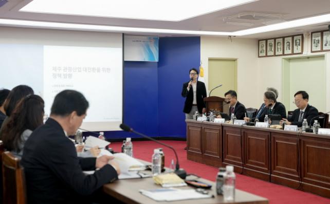 Á¤±ÍÀÏ Çѱ¹¹«¿ªÇùȸ Á¦ÁÖÁöºÎÀåÀÌ ¡®Á¦ÁÖ °ü±¤»ê¾÷ ´ëÀüȯÀ» À§ÇÑ Á¤Ã¥¹æÇâ: ±×¸° ¹× µðÁöÅÐ ´ëÀüȯÀ» À§ÇÑ °øµ¿Ã¢Á¶ ÃßÁøÀü·«¡¯À» ÁÖÁ¦·Î ¹ßÇ¥¸¦ ÇßÀ¸¸ç, ¿À¿µÈÆ Áö»ç ÁÖÀç Åä·ÐÀÌ À̾îÁ³´Ù.