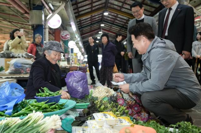 »óÀÎȸ °ü°èÀÚ¿ÍÀÇ °£´ãȸ ÀÌÈÄ¿¡´Â ½ÃÀå »óÀεéÀ» ¸¸³ª °Ý·ÁÇϰí, ÇѸ²¹Î¼Ó¿ÀÀϽÃÀåÀÇ ¹ßÀüÀ» À§ÇØ ÇÔ²² ³ë·ÂÇϰڴٴ ÀÇÁö¸¦ ¹àÇû´Ù.