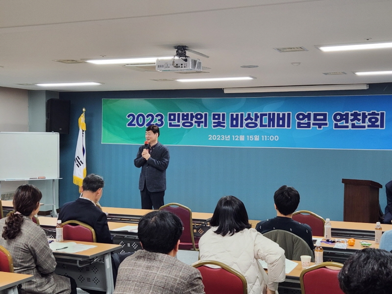 À̹ø ¿¬Âùȸ´Â ½Ã±º ´ã´çÀÚµéÀ» ´ë»óÀ¸·Î ¹Î¹æÀ§¡¤ºñ»ó´ëºñ ¾÷¹« ±³À°À» ½Ç½ÃÇϰí, 35»ç´Ü µî À¯°ü±â°üÀÇ ¾÷¹« ¼³¸íÀ» ½Ç½ÃÇÏ´Â µî ¹Î¹æÀ§¡¤ºñ»ó´ëºñ ¾÷¹« ´É·Â ¹× È¿À²À» Á¦°íÇϱâ À§ÇØ ¸¶·ÃµÆ´Ù.