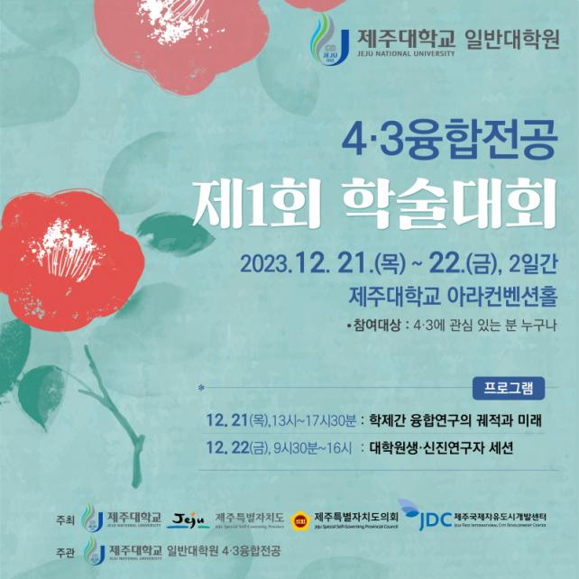 Á¦ÁÖ´ë 4¡¤3À¶ÇÕÀü°øÀº ³ÃÀü°ú Å»½Ä¹Î, µð¾Æ½ºÆ÷¶ó¿Í ¹ßÀüÁÖÀÇ µîÀÇ ¹®Á¦ÀÇ½Ä ¼Ó¿¡¼ 4¡¤3 ÀÌÀü°ú 4¡¤3 ÀÌÈĸ¦ ¤¾î³»´Â ´ÙÇÐÁ¦Àû ¿¬±¸¸¦ ÅëÇØ ¡®4¡¤3ÇС¯ÀÇ ÀÌ·ÐÀû¡¤½ÇõÀû ±â¹ÝÀ» È®¸³ÇÏ´Â °ÍÀ» ¸ñÇ¥·Î ÇÑ´Ù. ±¹³»¡¤¿Ü ¿¬±¸ÀÚÀÇ ¿¬±¸ ¼º°ú¿Í °í¹ÎÀ» °øÀ¯Çϰí 4¡¤3¿¬±¸¸¦ »çȸÀûÀ¸·Î È®»êÇϰíÀÚ ¿ù·Ê ÄÝ·ÎŰ¿òÀ» ºñ·ÔÇÏ¿© Ư° ¹× Çмú´ëȸ¸¦ Á¤±âÀûÀ¸·Î °³ÃÖÇϰí ÀÖ´Ù.