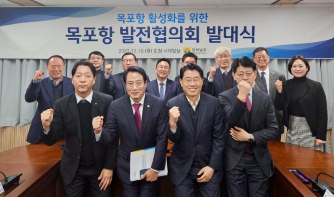 Àü¶ó³²µµ´Â 19ÀÏ µµÃ» ±è¿¬¼ö½Ç¿¡¼ ¸ñÆ÷Áö¹æÇؾç¼ö»êûÀå, ¸ñÆ÷Ç׸¸¹°·ùÇùȸÀå, Àü³²¼ºÎÇ׿î³ëÁ¶À§¿øÀå, ±â¾÷ ´ëÇ¥, Àü¹®°¡ µî 20¿© ¸íÀÌ Âü¼®ÇÑ °¡¿îµ¥ ¸ñÆ÷Ç× ¹ßÀüÇùÀÇȸ°¡ ¹ß´ëÇß´Ù°í ¹àÇû´Ù.