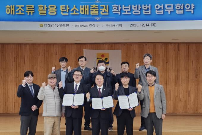ÀÌ¿¡ Àü³²µµ´Â µÎ ±â¾÷°ú ¼ÕÀâ°í ¹ü±¹°¡Àû °úÁ¦ÀÎ ÇØÁ¶¸¦ Ȱ¿ëÇÑ Åº¼Ò¹èÃâ±Ç È®º¸¸¦ À§ÇÑ °ü·Ã ¿¬±¸¿¡ ÁýÁßÇÒ °èȹÀÌ´Ù. Çù¾à¿¡ µû¶ó Àü³²Çؾç¼ö»ê°úÇпøÀº ÇØÁ¶ Ȱ¿ë ź¼Ò¹èÃâ±Ç È®º¸ ¹æ¹ý¿¬±¸¿Í ºí·çÄ«º» °³¹ß, Àü³² ¼ö»ê¾÷ ¹ßÀüÀ» À§ÇÑ ÇØÁ¶¾ç½Ä ¹× ¹Ù´Ù½£ Á¶¼º, Á¾ÀÚ»ý»ê ±â¼ú°³¹ß µî ¿¬±¸¿¡ Àû±Ø Çù·ÂŰ·Î Çß´Ù.