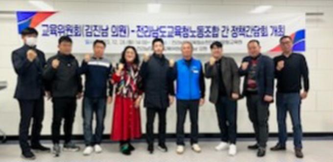 À̳¯ ±èÁø³²(¼øÃµ Á¦5¼±°Å±¸) ±³À°À§¿øÈ¸ ºÎÀ§¿øÀå°ú Àü¶ó³²µµ±³À°Ã» ÀϹÝÁ÷°ø¹«¿ø º¹ÁöÇâ»ó 7´ë ¿ä±¸»çÇ×ÀÇ Á¤´ç¼º °øÀ¯¿Í ÇÔ²² Çö¾È »ç¾÷À» Àü´ÞÇϰí Áö¹æ°ø¹«¿ø º¹¹«Á¶·Ê ÀϺΠ°³Á¤ µî Àü³²±³À°³ëÁ¶¿Í ±³À°À§¿øÀÌ ÇÔ²² ÇÏ°í »ó»ýÇÏ´Â ±³À°°øµ¿Ã¼ °£´ãȸ ÀÚ¸® ÀÌ¿´´Ù.