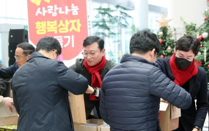 »ç¶û³ª´® Çູ»óÀÚ ¸¸µé±â´Â Àü³²µµ Àü Á÷¿øÀÌ ºÀ±Þ ³¡Àü ÃÑ 1õ¸¸ ¿øÀ» ¸ð¾Æ ¼¤Çª, ºñ´©, ¼ö¼¼¹Ì, Áֹ漼Á¦ µî »ýÇÊǰÀ» ±¸ÀÔÇÏ°í »óÀÚ¿¡ ´ã¾Æ ¾î·Á¿î ÀÌ¿ô¿¡°Ô ³ª´®À» ½ÇõÇÏ´Â Çà»ç´Ù.