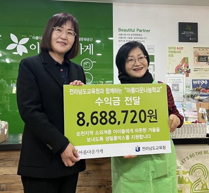 2023³â ¼øÃµÁö¿ª ³ª´®Çб³´Â ¼øÃµ´ë¼®ÃÊ, ¼øÃµ³²ÃÊ, ¼øÃµÁß¾ÓÃÊ, ¼øÃµ³²»êÃÊ, ¼øÃµ¿Õ¿îÁß, ¼øÃµ±Ý´çÁß, ¼øÃµ¸Å»êÁß, ¼øÃµ¿©Áß, ¼øÃµÃ»¾Ï°í ÃÑ 9°³ Çб³°¡ Âü¿©ÇÏ¿´À¸¸ç ÇлýµéÀÌ ±âÁõÇÑ ¹°Ç° ÃÑ 6,500¿©Á¡À» ÆÇ¸ÅÇØ 8,688,720¿øÀÇ ¼öÀͱÝÀ» ¸ð¾Æ ¼øÃµ±³À°Áö¿øÃ»¿¡ Àü´ÞÇß´Ù.