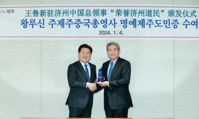 ¿À¿µÈÆ Áö»ç´Â 4ÀÏ ¿ÀÈÄ 7½Ã Á¦ÁÖ½ÅÈ¿ùµå ¸Þ¸®¾îÆ®°ü¿¡¼ ¿Õ·ç½Å ÃÑ¿µ»ç¿¡°Ô ¸í¿¹µµ¹ÎÁõÀ» ¼ö¿©Çϰí, 2024³â »õÇØ¿¡µµ Á¦ÁÖµµ¿Í Áß±¹ °£ ¿ìÈ£ Çù·Â ÁõÁøÀ» À§ÇÑ ¿ªÇÒÀ» ´çºÎÇß´Ù.