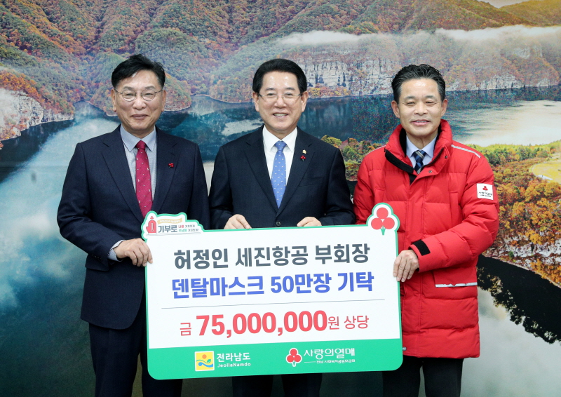 Àü³²µµ´Â 5ÀÏ ÇãÁ¤ÀÎ ¼¼ÁøÇ×°ø ºÎȸÀåÀ¸·ÎºÎÅÍ Ãë¾à°èÃþ Áö¿øÀ» À§ÇØ ¸¶½ºÅ© 50¸¸ Àå(7õ500¸¸ ¿ø »ó´ç)À» ±âºÎ¹Þ°í, Àü³²µµÃ» Á÷¿øµéÀÌ ¸ðÀº ¼º±Ý 5õ240¸¸ ¿øÀ» Àü³²»çȸº¹Áö°øµ¿¸ð±Ýȸ¿¡ Àü´ÞÇß´Ù°í ¹àÇû´Ù.