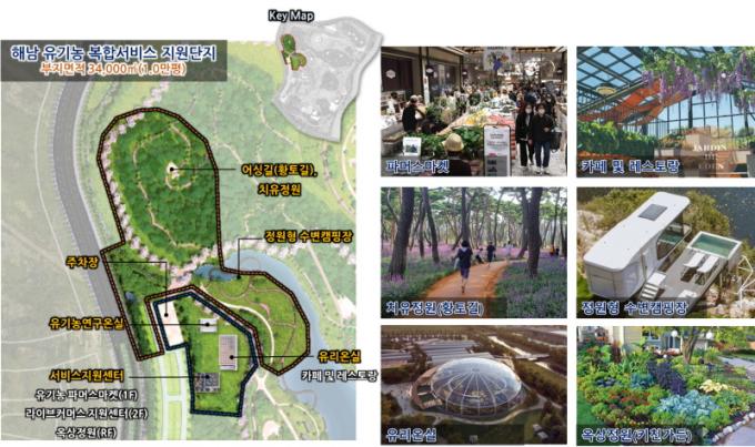 ÇØ³² »êÀ̸é ÀÏ¿ø¿¡ ±â¹Ý ½Ã¼³À» Æ÷ÇÔÇØ À¯±â ģȯ°æ Àü¹®ÆÇ¸ÅÀå, ÀÚ¿¬Ä¡À¯ ·¹½ºÅä¶û¡¤Ä«Æä, Á¾ÇÕÄ¿¹Â´ÏƼ¼¾ÅÍ, °¡Á¤°£Æí½Ä(HMR)¡¤¹ÐŰƮ µî °¡°ø¡¤ÆÇ¸Å½Ã¼³°ú À¯±â ģȯ°æ ¸ÞŸ¹ö½º Àü¿ë°ü, ¾î¸°ÀÌ ÀÚ¿¬Ä¡À¯ ³îÀÌÅÍ¡¤À¯±â½Äǰ°ø¹æ, üÇè³óÀå µî ±³À°¡¤È«º¸¡¤Ã¼Çè½Ã¼³°ú À¯±â³ó Ä¡À¯ ¹× »ýŰø¿ø ½Ã¼³ µîÀÌ µé¾î¼³ ¿¹Á¤ÀÌ´Ù.