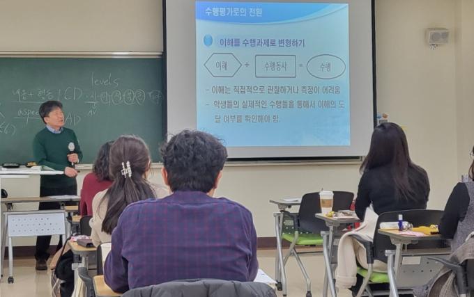 22ÀÏ ±¤ÁÖ±³À°¿¬¼ö¿ø¿¡ µû¸£¸é À̹ø Á÷¹«¿¬¼ö´Â 2022 °³Á¤ ±³À°°úÁ¤°ú °í±³ÇÐÁ¡Á¦ÀÇ µµÀÔÀ¸·Î º¯ÇÏ°Ô µÈ ÇÐ»ç ¿î¿µ¿¡ ´ëÀÀÇÏ°í ±³»çÀÇ ¼ö¾÷ ¿ª·® °È¸¦ À§ÇØ ±âȹµÆ´Ù. ¿¬¼ö¸¦ ÅëÇØ ±³»çµéÀº ÀÚ±â ÁÖµµÀû ÇнÀ ¹æ¹ý°ú °úÁ¤ÀÌ Áß½ÉÀÌ µÇ´Â Æò°¡ µî ´Ù¾çÇÑ À̷аú »ç·Ê¸¦ Á¢Çϰí Åä·ÐÇÏ´Â ½Ã°£À» °¡Á³´Ù.
