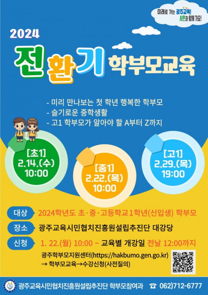 ÇÑÆí, À̹ø ±³À°Àº ±¤ÁÖÇкθðÁö¿ø¼¾ÅÍ ´©¸®Áý(http://hakbumo.gen.go.kr)¿¡¼ Áö³ 22ÀϺÎÅÍ ´ë»óº° °³° Àü³¯ 12½Ã±îÁö »çÀü ½ÅûÀ» ¹Þ´Â ÁßÀÌ´Ù. ÀÚ¼¼ÇÑ ³»¿ëÀº ±¤ÁÖ±³À°½Ã¹ÎÇùÄ¡ÁøÈï¿ø¼³¸³ÃßÁø´Ü ÇкθðÂü¿©°ú(¢Ï712-6777~8)·Î ¹®ÀÇÇÏ¸é µÈ´Ù.