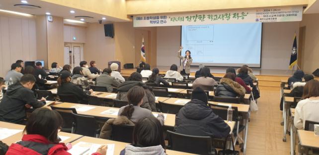 ÃʵîÇб³ ±³À°°úÁ¤¿¡ ´ëÇÑ ÀÌÇØ¸¦ ³ôÀ̰í ÀÚ³àÀÇ ÀûÀÀ°ú ¼ºÀåÀ» µ½´Â Çкθ𠿪·®À» °ÈÇϱâ À§ÇØ ÃßÁøµÈ À̹ø ¿¬¼ö´Â¡®2022 °³Á¤ ±³À°°úÁ¤ ¹× Çб³»ýȰ ¾È³»¡¯,¡®±³À°È°µ¿ ¹× ±³±Ç º¸È£ ¿¬¼ö¡¯¶ó´Â 2°³ÀÇ ÁÖÁ¦·Î ¿î¿µµÇ¾úÀ¸¸ç 120¿©¸íÀÇ Çкθ𰡠Âü¿©ÇÏ¿© ¿¬¼ö¿¡ ³ôÀº °ü½ÉÀ» º¸¿©ÁÖ¾ú´Ù.