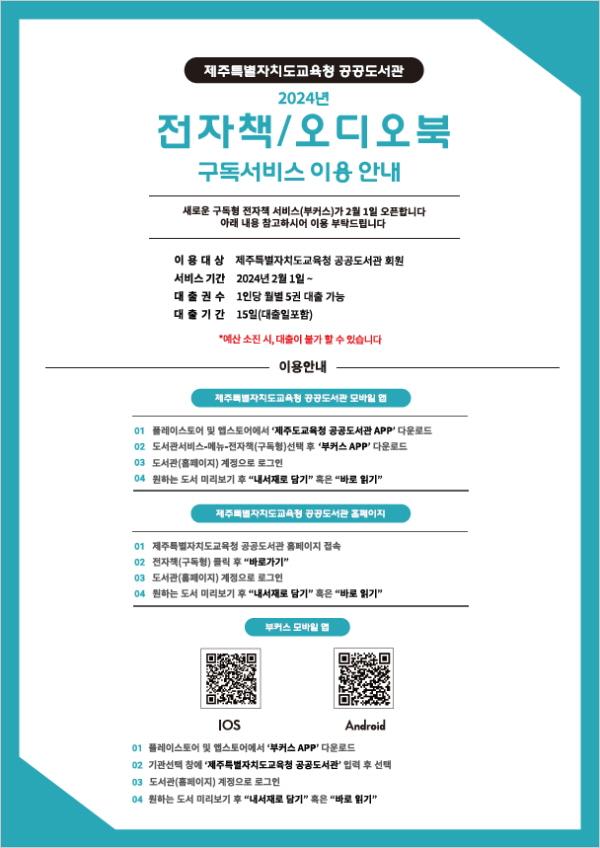 ÀÌ¿ë ¹æ¹ýÀº PCÀÎ °æ¿ì Á¦ÁÖÆ¯º°ÀÚÄ¡µµ±³À°Ã» °ø°øµµ¼°ü(https://org.jje.go.kr/lib)¿¡ Á¢¼ÓÇÏ¿©¡¸ÀüÀÚÃ¥(±¸µ¶Çü)¡¹¹Ù·Î°¡±â ¹öưÀ» Ŭ¸¯ÇÏ¸é ¹Ù·Î ÀÌ¿ëÇÒ ¼ö ÀÖ°í, ¸ð¹ÙÀÏ(½º¸¶Æ®Æù, ÅÂºí¸´ µî)ÀÎ °æ¿ì Á¦ÁÖµµ±³À°Ã» °ø°øµµ¼°ü ¾Û ¶Ç´Â ºÎÄ¿½º ¾ÛÀ» ¼³Ä¡ÇÑ ÈÄ ¼ºñ½º ÀÌ¿ëÀÌ °¡´ÉÇÏ´Ù.