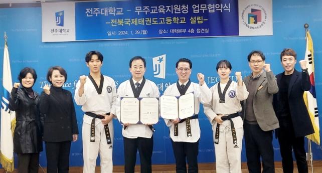 Çù¾à½Ä¿¡´Â ±è½Â±â ±³À°Àå°ú ¹ÚÁø¹è ÃÑÀå µî ¾ç ±â°ü °ü°èÀÚ 8¸íÀÌ Âü¼®ÇÏ¿´´Ù. Çù¾àÀ» ÅëÇØ ¹«ÁÖ±³À°Áö¿øÃ»°ú ÀüÁÖ´ëÇб³´Â ÀüºÏ±¹Á¦Å±ǵµ°íµîÇб³ ¼³¸³À» À§ÇÑ Çù·ÂÀ» °ÈÇϰí, űǵµ ±³¿ø ¹× ±³À° ÇÁ·Î±×·¥ Áö¿ø, űǵµ ½Ã¹ü´Ü ¿î¿µ µî űǵµ ¹®È ÁøÈï, ÇлýµéÀÇ Áø·Î¡¤ÁøÇп¡ Çù·ÂÇÒ °ÍÀ» ´ÙÁüÇÏ¿´´Ù.