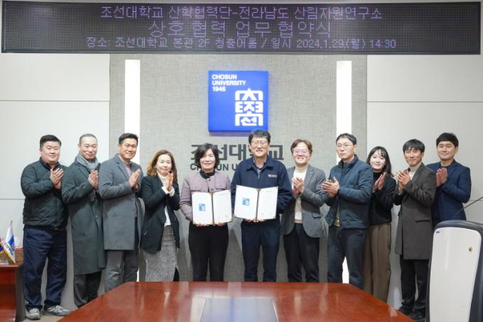 Á¶¼±´ë º»°ü ûÃâ¾î·ë¿¡¼ ÁøÇàµÈ Çù¾à½ÄÀº Á¶¼±´ë ¹ÚÁ¾¶ô »êÇÐÇù·Â´ÜÀå°ú Àü³²µµ »ê¸²ÀÚ¿ø¿¬±¸¼Ò ¿Àµæ½Ç ¿¬±¸¼ÒÀå µî ´ëÇаú ¿¬±¸¼Ò °ü°èÀÚ 8¸íÀÌ Âü¼®ÇÑ °¡¿îµ¥ ÁøÇàµÆ´Ù.