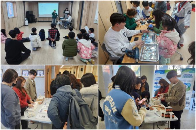 ±¹¸³¼øÃµ´ëÇб³ »çȸºÀ»ç´ÜÀº Ä·ÆäÀÎ ±â°£ ¼øÃµSOS¾î¸°À̸¶À»À» ¹æ¹®ÇÏ¿© ȯ°æº¸È£ ±³À°À» ÁøÇàÇϰí, Ä·ÆÛ½º ÀÏ¿ø¿¡¼ ´ëÇÐ ±¸¼º¿ø°ú ½Ã¹ÎÀ» ´ë»óÀ¸·Î ȯ°æº¸È£ ¼³¹®Á¶»ç¿Í ģȯ°æ ¹°Ç° ¹èºÎ µîÀ» ½Ç½ÃÇÏ¿´´Ù.