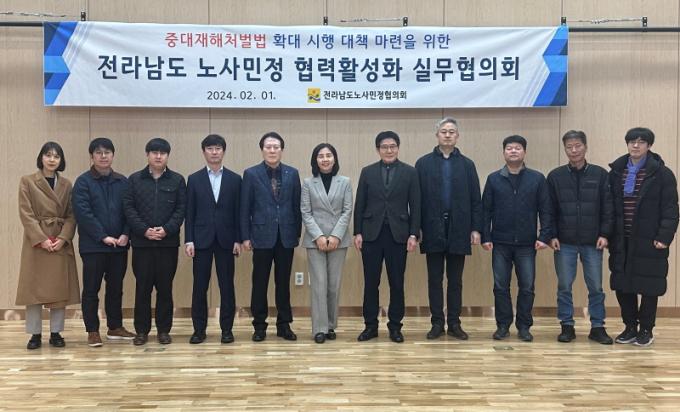 ȸÀÇ¿¡´Â Àü³²µµ ³ë»ç¹ÎÁ¤½Ç¹«ÇùÀÇȸ À§¿ø µî 12¸íÀÌ Âü¼®ÇØ Áß´ëÀçÇØÃ³¹ú¹ý(Áß´ëÀçÇØ¹ý) È®´ë ½ÃÇà¿¡ µû¸¥ Áö¿ª ³ë¡¤»ç¡¤¹Î¡¤Á¤ÀÌ ÇÒ ¼ö ÀÖ´Â ¿ªÇÒ¿¡ ´ëÇØ ½Éµµ ÀÖ´Â ³íÀǸ¦ ÆîÃÆ´Ù.