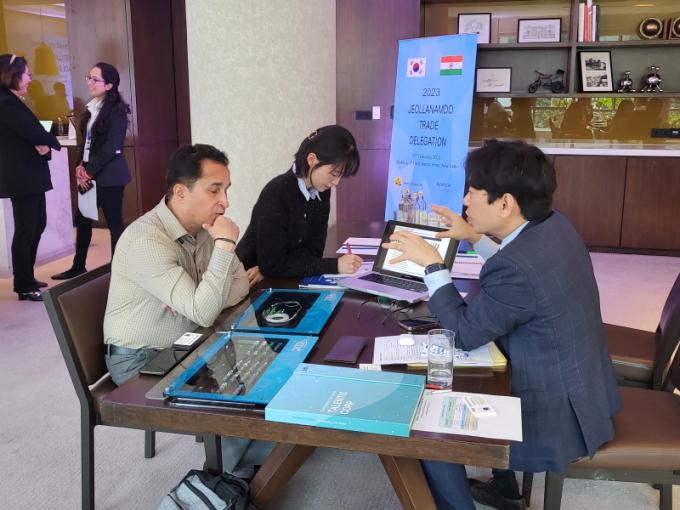 ½ÅÇö°ï Àü³²µµ ±¹Á¦Çù·Â°üÀº ¡°¹æÄÛ-´ºµ¨¸® ½ÃÀ尳ô´Ü ÆÄ°ßÀº µµ³» Áß¼Ò±â¾÷ÀÇ ¾Æ¼¼¾È ¹× Àεµ ½ÃÀå ÁøÃâ ±³µÎº¸°¡ µÉ °Í¡±À̶ó¸ç ¡°Âü°¡ ±â¾÷ÀÌ Áß¿äÇÑ ºñÁî´Ï½º ±âȸ¸¦ Æ÷ÂøÇϰí, ¼¼°è ½ÃÀå ÁøÃâ °æÀï·ÂÀ» °ÈÇÏ±æ ±â´ëÇÑ´Ù¡±°í ¸»Çß´Ù.
