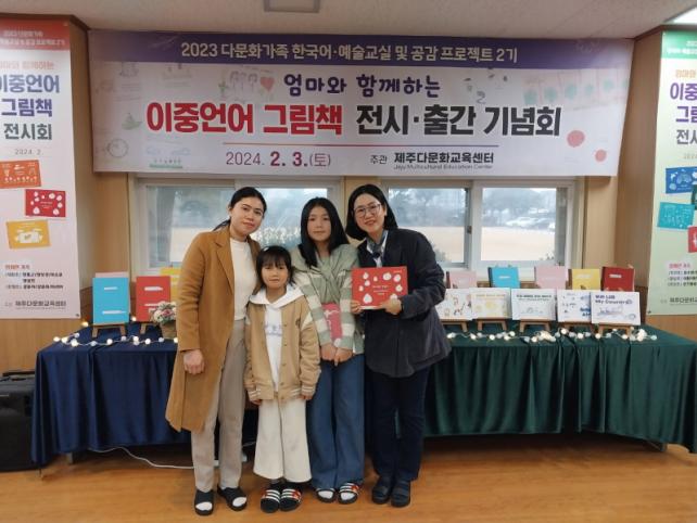 Á¦ÁÖ´Ù¹®È±³À°¼¾ÅÍ µµ¼°ü¿¡¼ ¿ÀÈÄ 2½ÃºÎÅÍ µÎ ½Ã°£ µ¿¾È ÁøÇàµÇ¾ú´ø ¡º¾ö¸¶¿Í ÇÔ²²ÇÏ´Â ÀÌÁß¾ð¾î ±×¸²Ã¥ Àü½Ã・Ãâ°£ ±â³äȸ¡»¿¡¼´Â ¡®2023 ´Ù¹®È°¡Á· Çѱ¹¾î¡¤¿¹¼ú±³½Ç ¹× °ø°¨ÇÁ·ÎÁ§Æ®¡¯¿¡ ´ëÇÑ »ç¾÷ ¼³¸í°ú ÇÔ²² ÇÁ·ÎÁ§Æ® ±â°£ µ¿¾ÈÀÇ È°µ¿»çÁø ¹× ÀÎÅÍºä ¿µ»ó µîÀÌ °ø°³µÇ¾î ÀÌÁß¾ð¾î ±×¸²Ã¥ Á¦ÀÛ °úÁ¤ ¹× °¡Á·µéÀÇ º¯ÈµÈ ¸ð½À¿¡ ´ëÇÑ ³»¿ëÀ» ¾Ë ¼ö ÀÖ¾ú´Ù.
