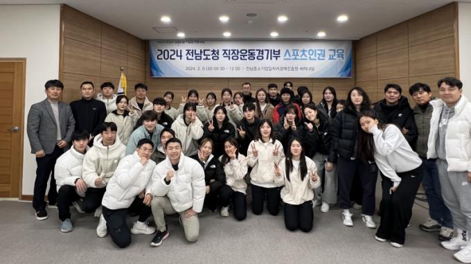 À̳¯ °»ç·Î ³ª¼± Â÷¿©Áø Àü³²Ã¼À°È¸ ½ºÆ÷Ã÷°úÇм¾ÅÍ ¼±ÀÓ¿¬±¸¿øÀº ¡®ÀϵîÀÌ ¾Æ´Ñ Àαǡ¯À̶ó´Â ÁÖÁ¦·Î ÀαÇÀÇ ±âº» °³³ä, ´Ù¾çÇÑ ÀαÇÄ§ÇØ »ç·Ê, ÀαÇÄ§ÇØ ¹æÁö ´ëÃ¥ µîÀ», ¹ÚÇÏÁ¤ Àü³²µµÃ» üÀ°Á¤Ã¥ÆÀÀåÀº Á÷Àå¿îµ¿°æ±âºÎÀÇ Åõ¸íÇÑ ÆÀ ¿î¿µ¿¡ ´ëÇØ °Á¶Çß´Ù.