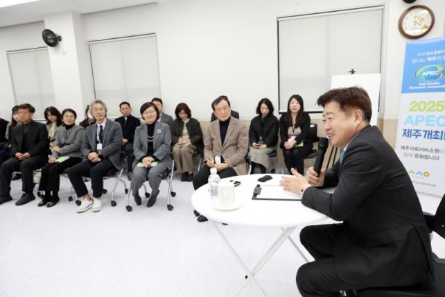 ¿À¿µÈÆ Áö»ç´Â ¡°ÃâÀÚÃ⿬±â°üÀº µµ¹ÎÀÌ ÇÊ¿äÇÏ´Ù°í ÆÇ´ÜÇØ Á¶·Ê µî °ü·Ã Á¦µµ¿¡ µû¶ó ¼³¸³µÅ Á¦ÁÖµµ¿Í ÇÔ²² ÀÏÇÏ´Â ÆÄÆ®³Ê¡±¶ó¸ç ¡°Á¦ÁÖ»çȸ¼ºñ½º¿ø¿¡¼ ÀÏÇÏ´Â °ÍÀÌ ¾ó¸¶³ª Áß¿äÇÑ °ÍÀÎÁö, µµ¹Îµé¿¡°Ô ¾ó¸¶³ª ÇÊ¿äÇÑ ÀÏÀÎÁö °°ÀÌ °ø°¨ÇÏ´Â ½Ã°£ÀÌ ´õ ¸¹¾ÆÁö±æ ¹Ù¶õ´Ù¡±°í ÀüÇß´Ù.ÀÌ¾î ¡°»çȸ¼ºñ½º¿øÀÇ À§»óÀ» ³ôÀÌ´Â ¾÷¹«»Ó¸¸ ¾Æ´Ï¶ó Á¦ÁÖµµ°¡ ÃßÁøÇÏ´Â Á¦ÁÖ°¡Ä¡ ÅëÇÕµ¹º½, Ãʵî ÁÖ¸»µ¹º½ µî º¹ÁöÁ¤Ã¥ÀÌ Á¦´ë·Î ÁøÇàµÇ°í ÀÖ´ÂÁö¿¡ ´ëÇØ¼µµ ´Ù¾çÇÑ ÀǰßÀ» Á¦½ÃÇØ ´Þ¶ó¡±°í ´çºÎÇß´Ù.