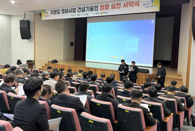 º¸°íȸ¿¡ ¾Õ¼ ¹ÝºÎÆÐ¡¤Ã»·Å »ç¾÷ ÃßÁøÀ» À§ÇØ ´ã´ç °ø¹«¿ø°ú °Ç¼³°ø»ç °ü°èÀÚ µî¿¡ ´ëÇØ û·Å ±³À°°ú ¼¾à½Äµµ ÁøÇàµÆ´Ù. À̳¯ °ü°èÀÚµéÀº ºÎÁ¤ ûŹ ¹× ±Ýǰ ¼ö¼ö µîÀ» ¹æÁöÇϰí, µµ·Î°ø»ç ÇöÀå ³» û·Å¹®È È®»ê°ú ¹ÝºÎÆÐ ½ÇõÀ» ´ÙÁüÇß´Ù.