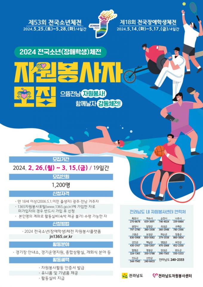 Á¦53ȸ Àü±¹¼Ò³âüÀ°´ëȸ´Â ¿À´Â 5¿ù 25ÀϺÎÅÍ 28ÀϱîÁö, Á¦18ȸ Àü±¹Àå¾ÖÇлýüÀ°´ëȸ´Â 5¿ù 14ÀϺÎÅÍ 17ÀϱîÁö ÁÖ °³ÃÖÁöÀÎ ¸ñÆ÷¿Í 22°³ ½Ã±º¿¡¼ ºÐ»ê °³ÃֵȴÙ.