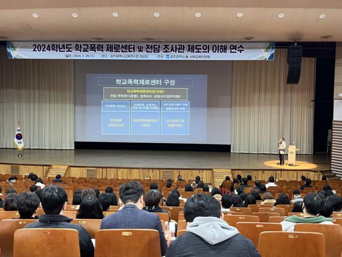 ÇÑÆí, ±¤ÁÖµ¿¡¤¼ºÎ±³À°Áö¿øÃ»Àº 2¿ù 28ÀÏ Çб³ ÇöÀå¿¡¼ Çб³Æø·ÂÁ¦·Î¼¾ÅÍ ¿î¿µ¿¡ ´ëÇÑ ÀÌÇØ¸¦ µ½±â À§ÇØ Çб³ ±³°¨ ¹× Çлý»ýȰºÎÀå ´ë»ó ¿¬¼ö¸¦ ½Ç½ÃÇß´Ù. À̸¦ ÅëÇØ Á¦·Î¼¾ÅÍ ±¸Ãà ÇöȲ ¹× ¿î¿µ »ç¾÷¿¡ ´ëÇÑ ¾È³»¿Í Çб³Æø·Â »ç¾È 󸮿¡ ´ëÇÑ ÁÖ¿ä °³Á¤ »çÇ×À» ¾È³»Çß´Ù.