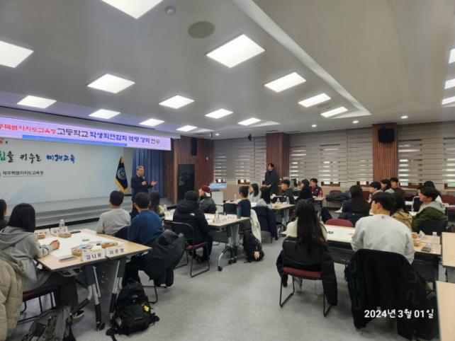 µµ³» °íµîÇб³ Çлýȸ ¿¬ÇÕȸ ȸ¿ø 26¸íÀÌ Âü¿©ÇÑ À̹ø ¿¬¼ö´Â »õ Çб⠽ÃÀÛ Àü, ¿ì¸® Çб³ Çлý ÀÚÄ¡ ¿î¿µÀ» À§ÇÑ Å« ±×¸²À» ±×¸®±â À§ÇØ ¡â¹ÎÁֽùΠÀÌÇØ ¡âÁÖµµÀûÀÎ Çлý ÀÚÄ¡ µîÀÇ ÁÖÁ¦·Î 3½Ã°£ µ¿¾È ¿î¿µÇÏ¿´´Ù.